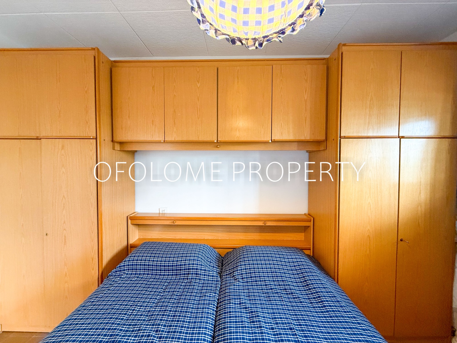 Frente al recibidor se accede a la zona de noche, bien diferenciada del resto de la casa para garantizar tranquilidad y descanso. La primera habitación es amplia y luminosa, equipada con cama de matrimonio y armarios, además de una ventana con agradables vistas al jardín. La segunda habitación es individual, perfecta como dormitorio adicional, despacho o habitación infantil. También dispone de armario y ventana con vistas al exterior.