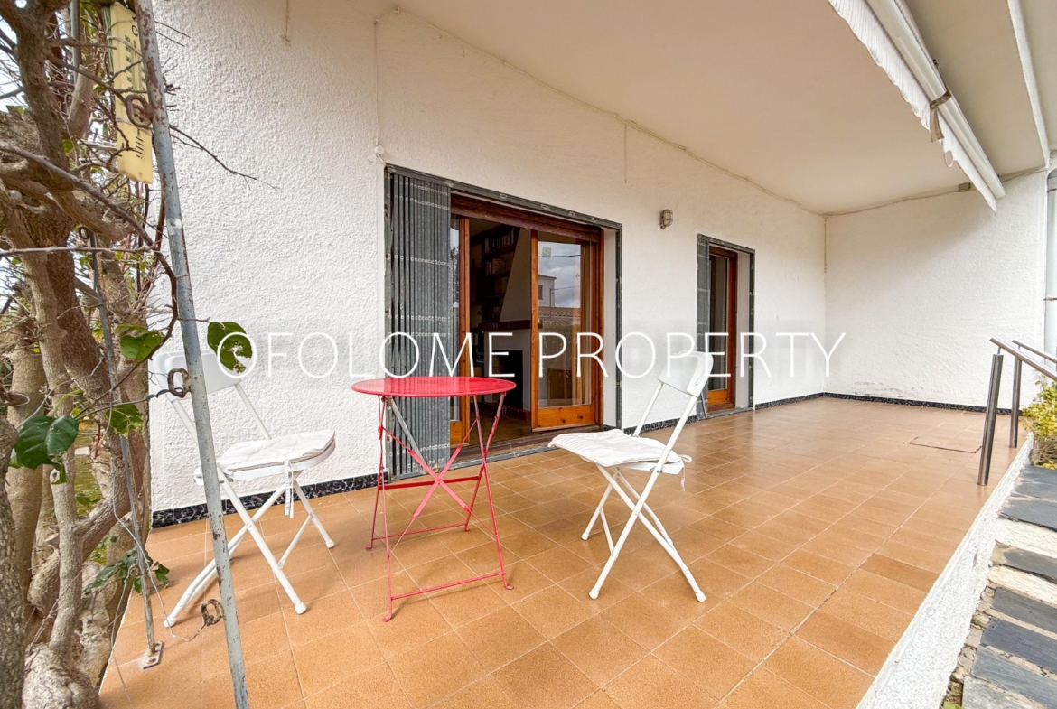 Al entrar en la casa encontramos un recibidor luminoso y acogedor, que distribuye de forma práctica todas las estancias de la vivienda. A la derecha se sitúa un amplio salón-comedor lleno de luz natural, gracias a sus grandes ventanas de madera que aportan carácter y calidez al espacio. Este salón cuenta además con una chimenea, perfecta para crear un ambiente acogedor durante los meses más frescos del año. Desde esta estancia se accede directamente a una terraza de aproximadamente 17 m², ideal para disfrutar de comidas al aire libre, momentos de relax o reuniones con familia y amigos.
