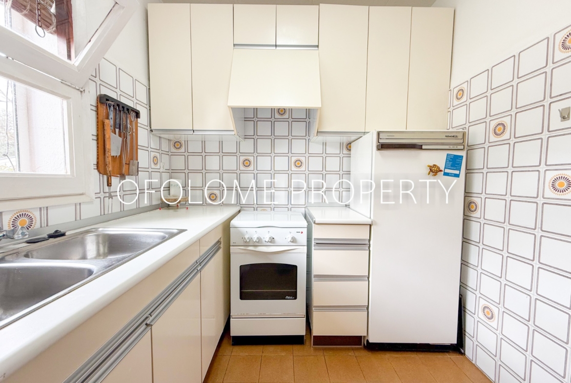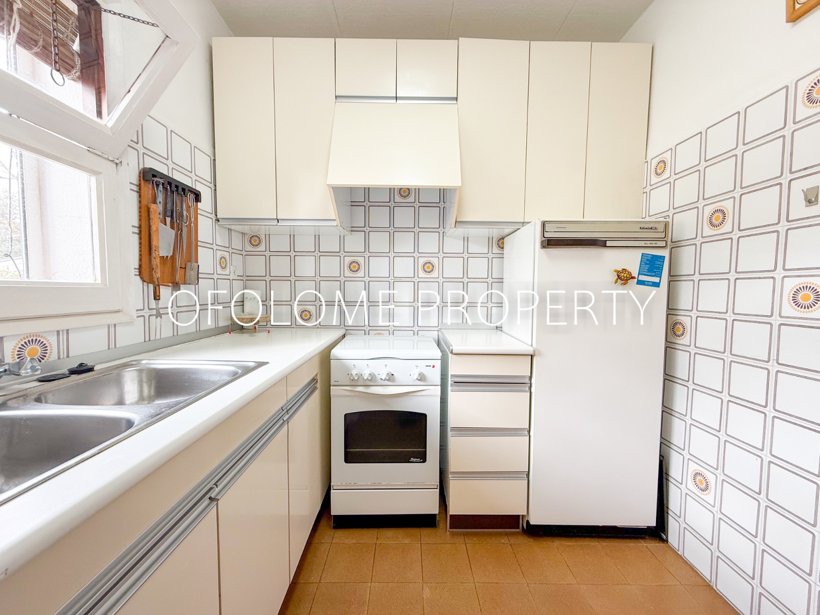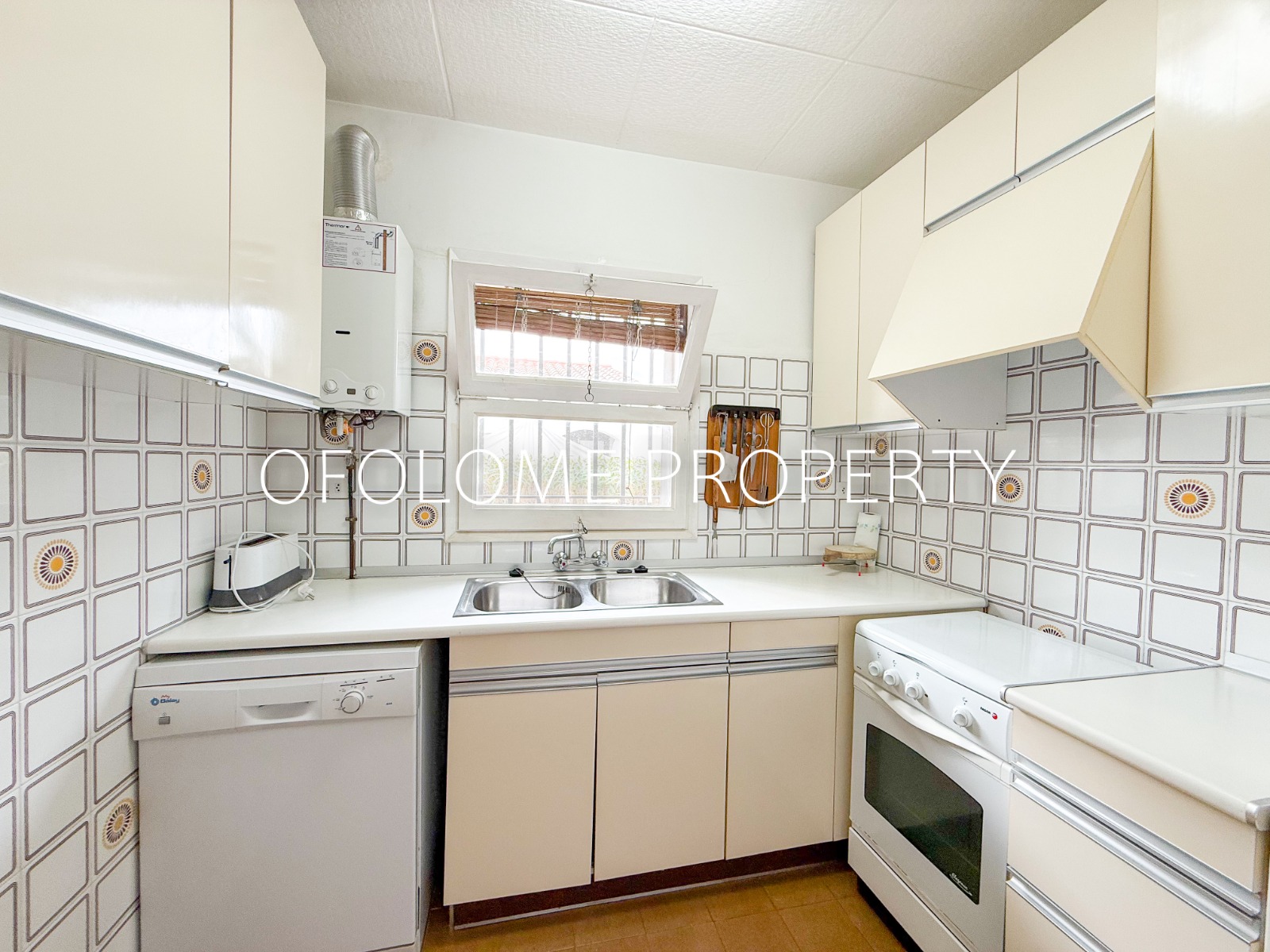 A la izquierda del recibidor se encuentra una cocina totalmente equipada, con electrodomésticos y espacio suficiente para cocinar cómodamente. En esta misma zona también hay un baño de cortesía, muy práctico para el uso diario o para las visitas.
