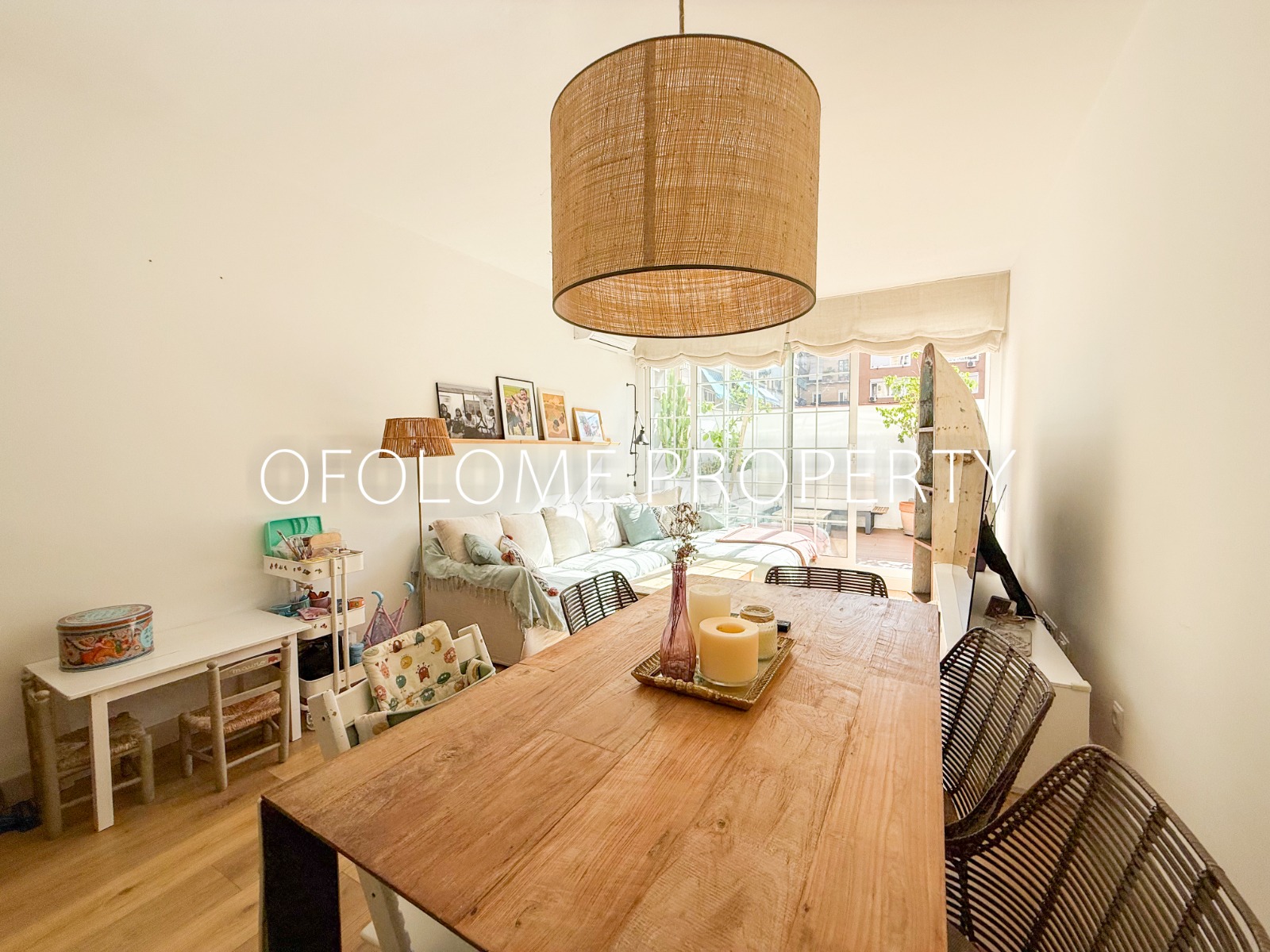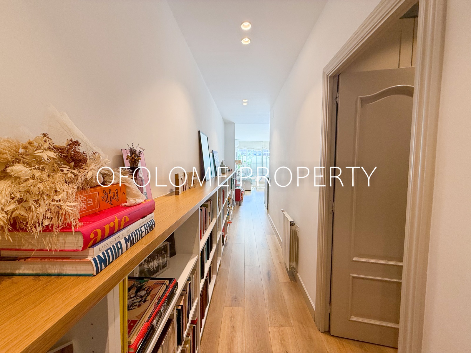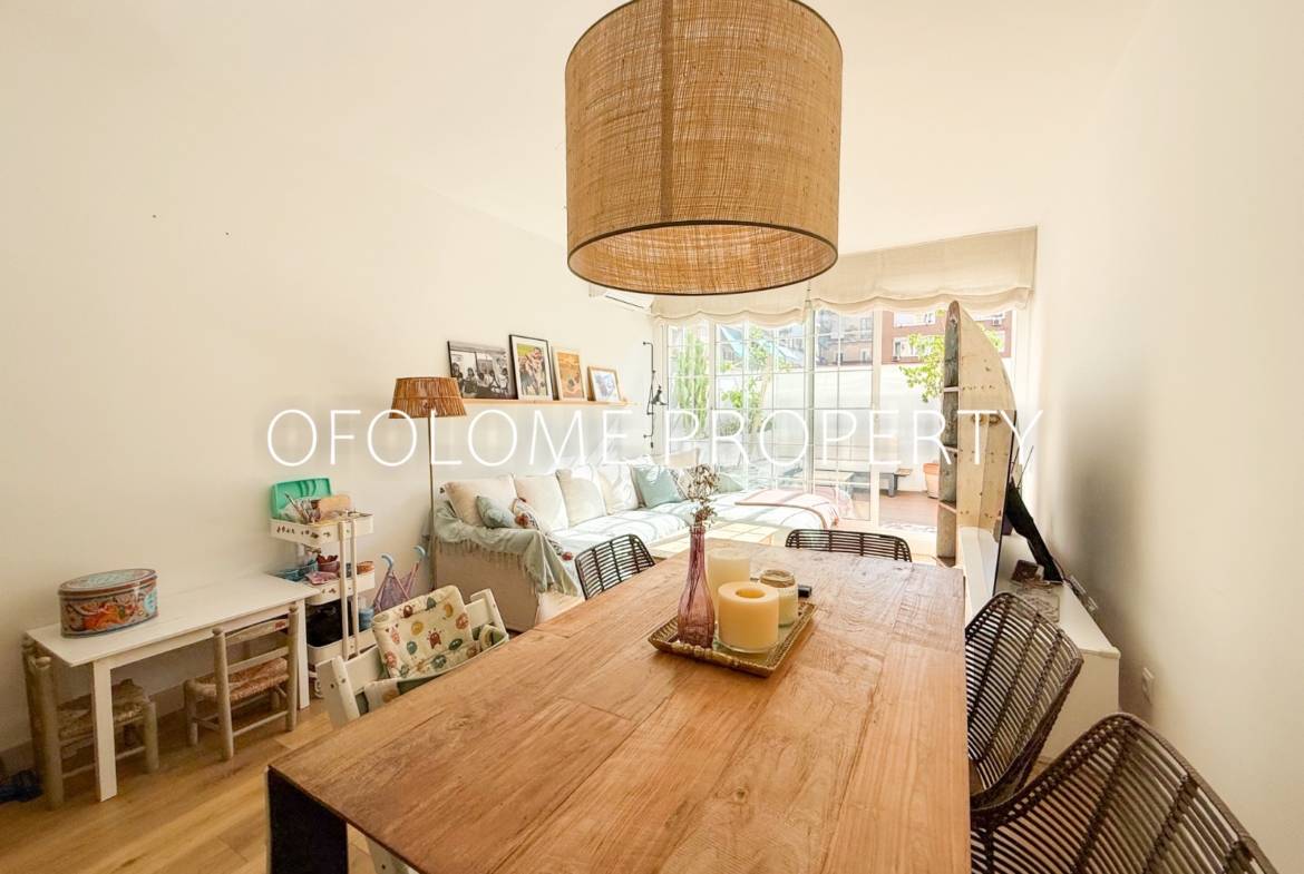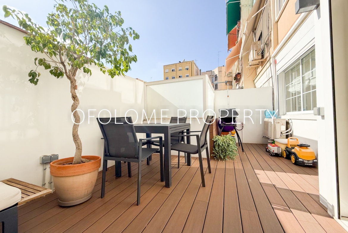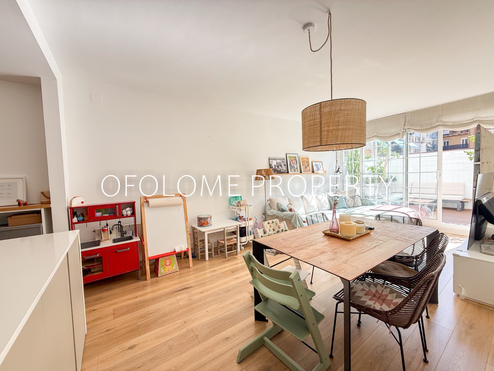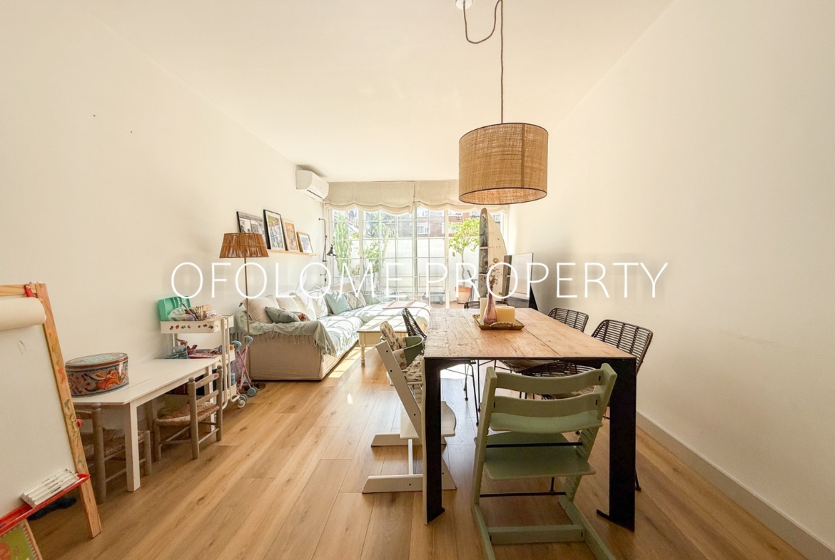 El salón-comedor, de 21,8 m², ofrece amplitud, luminosidad y confort. Gracias a sus grandes ventanales de aluminio, la luz natural inunda la estancia durante todo el día, creando un ambiente acogedor y alegre. Desde aquí se accede a una elegante terraza de 17 m², un verdadero lujo en pleno centro de Barcelona. Este espacio exterior te permitirá disfrutar del clima mediterráneo durante todo el año: organizar cenas al aire libre, hacer barbacoas con amigos o simplemente relajarte al atardecer con una copa de vino.