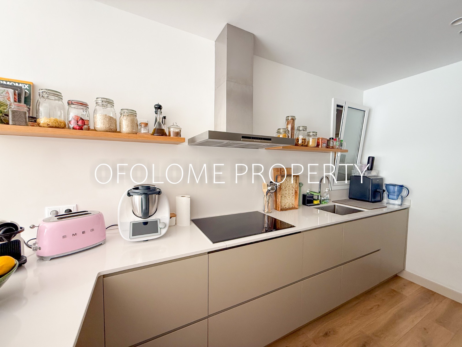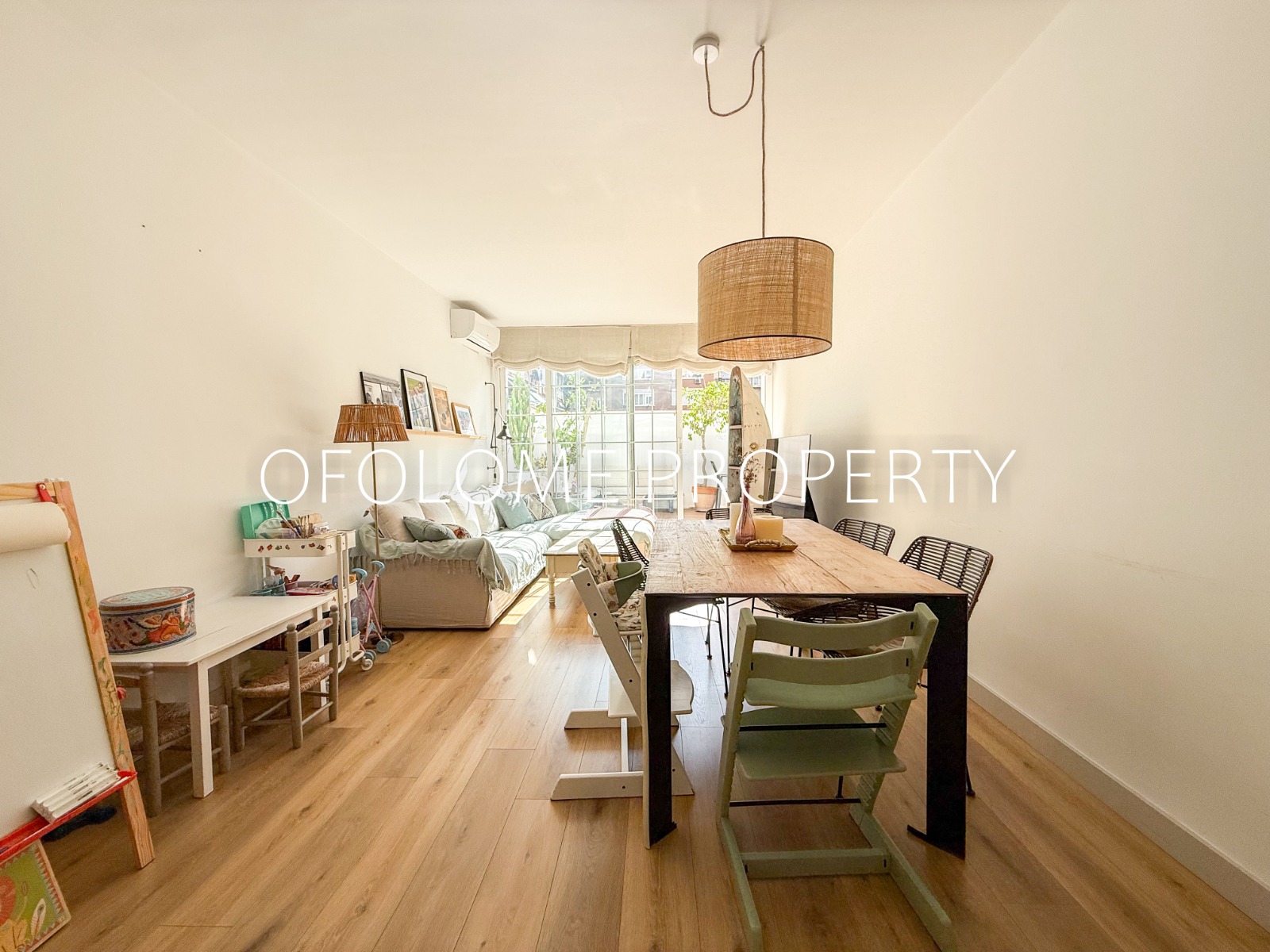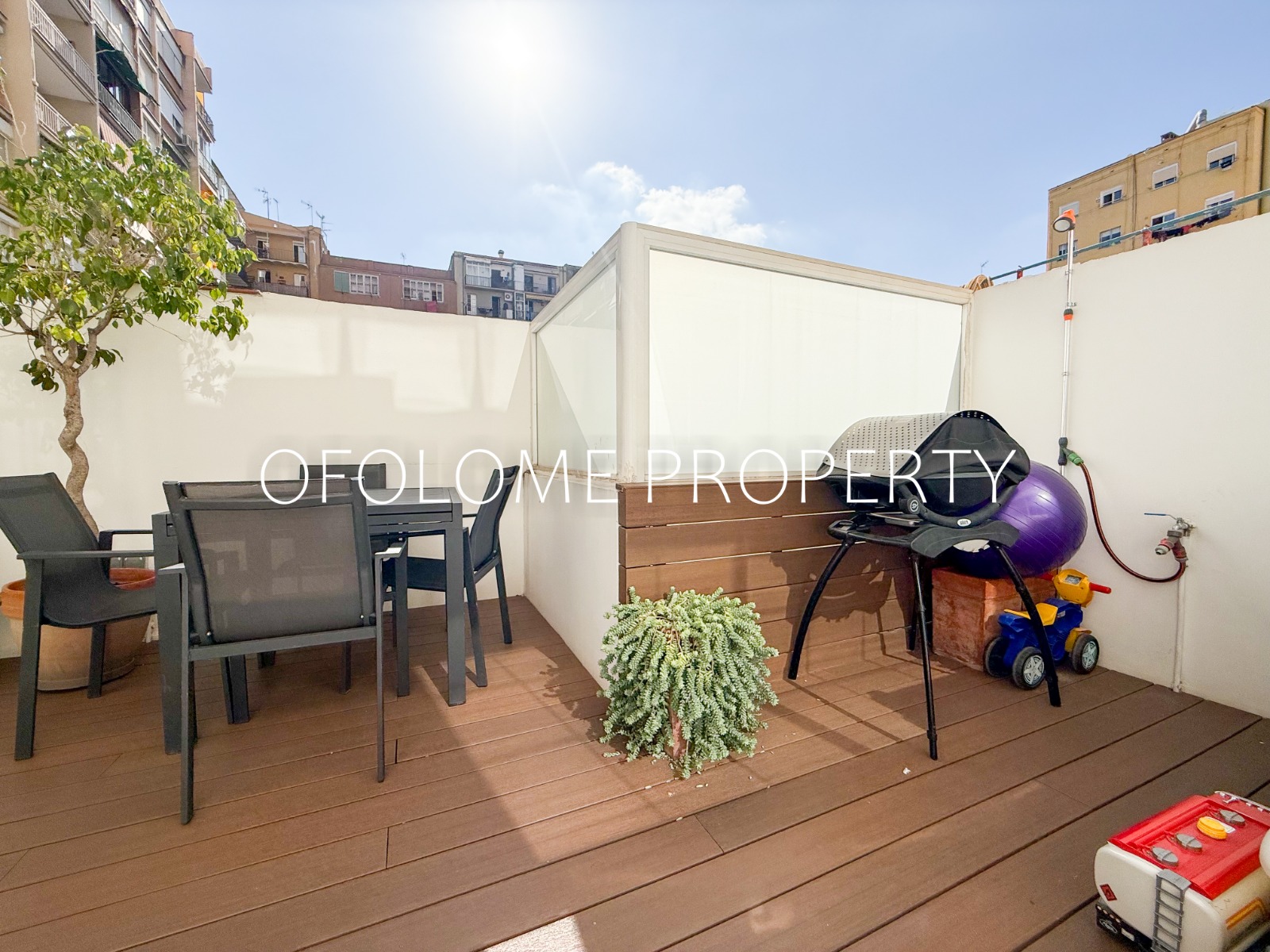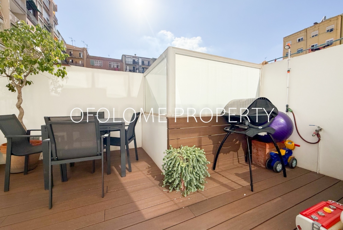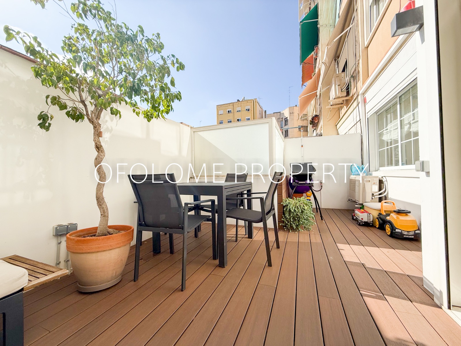El salón-comedor, de 21,8 m², ofrece amplitud, luminosidad y confort. Gracias a sus grandes ventanales de aluminio, la luz natural inunda la estancia durante todo el día, creando un ambiente acogedor y alegre. Desde aquí se accede a una elegante terraza de 17 m², un verdadero lujo en pleno centro de Barcelona. Este espacio exterior te permitirá disfrutar del clima mediterráneo durante todo el año: organizar cenas al aire libre, hacer barbacoas con amigos o simplemente relajarte al atardecer con una copa de vino.