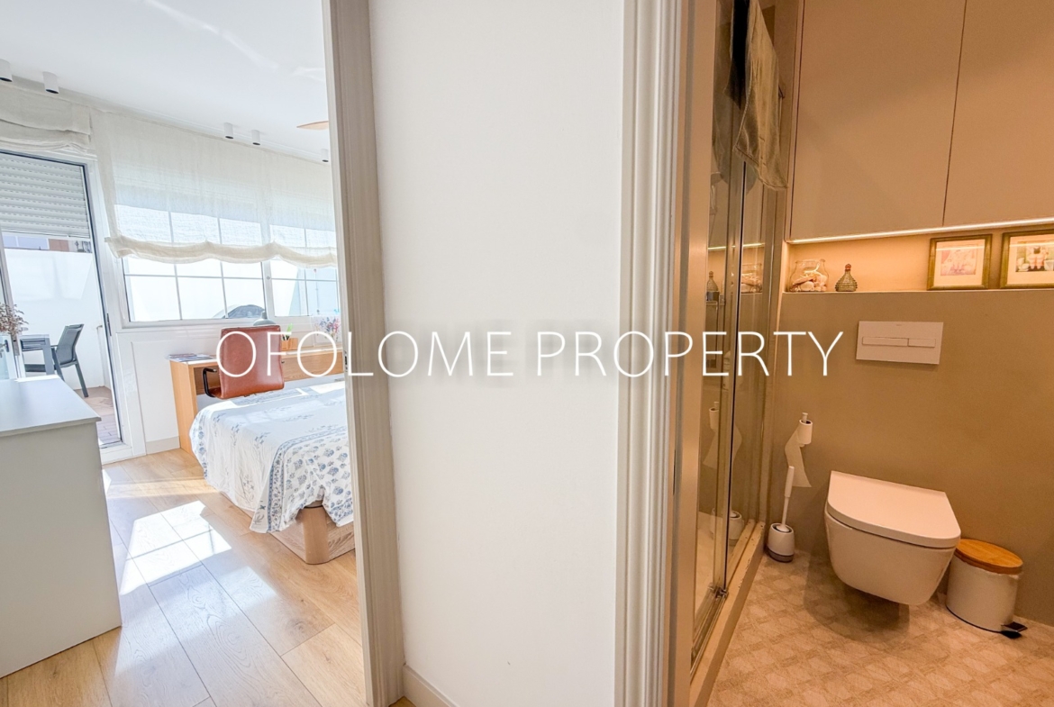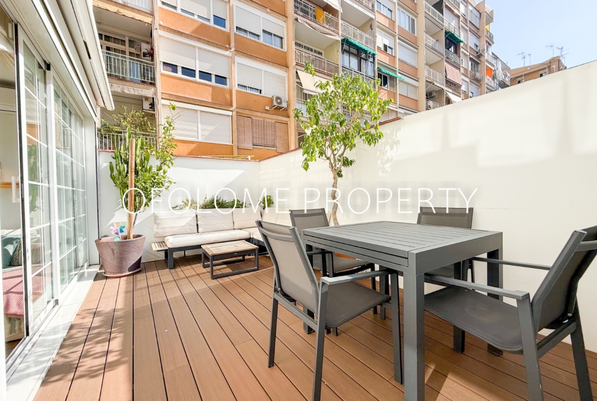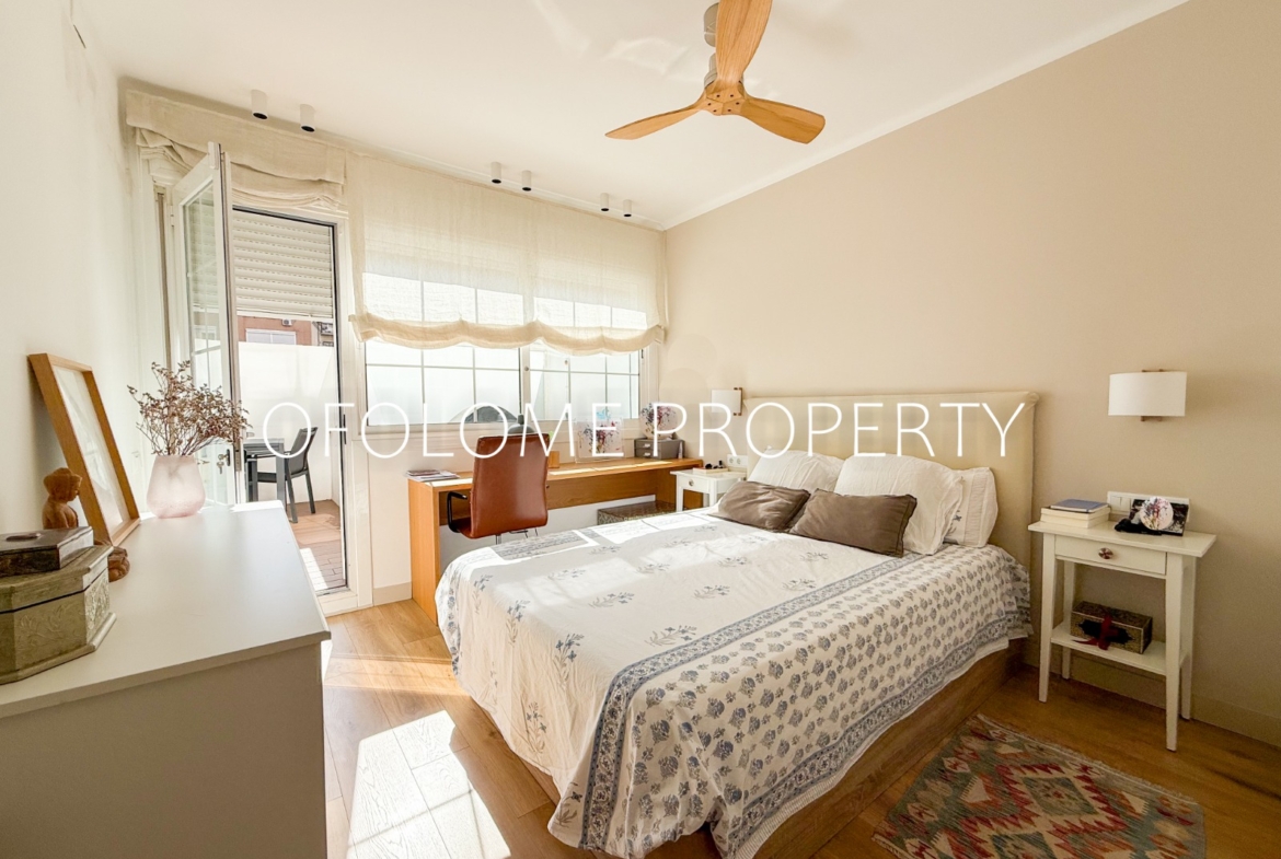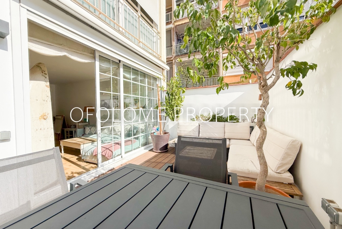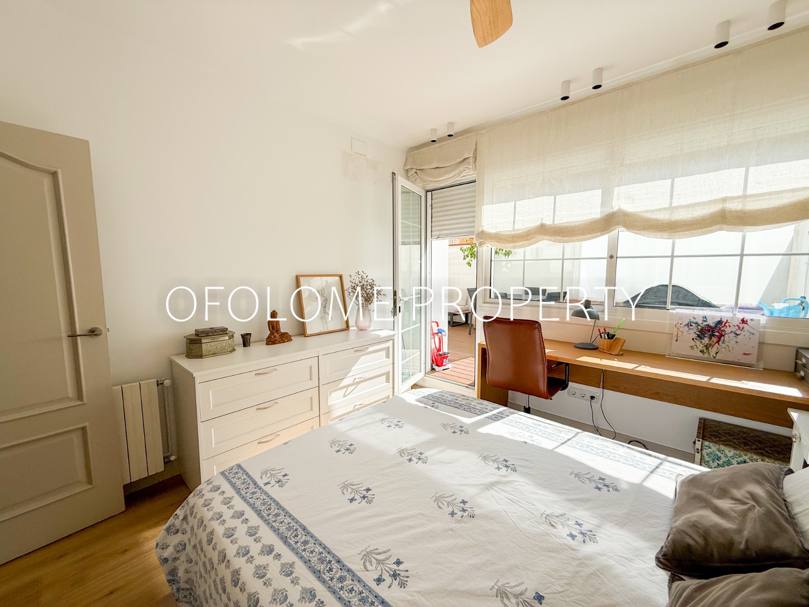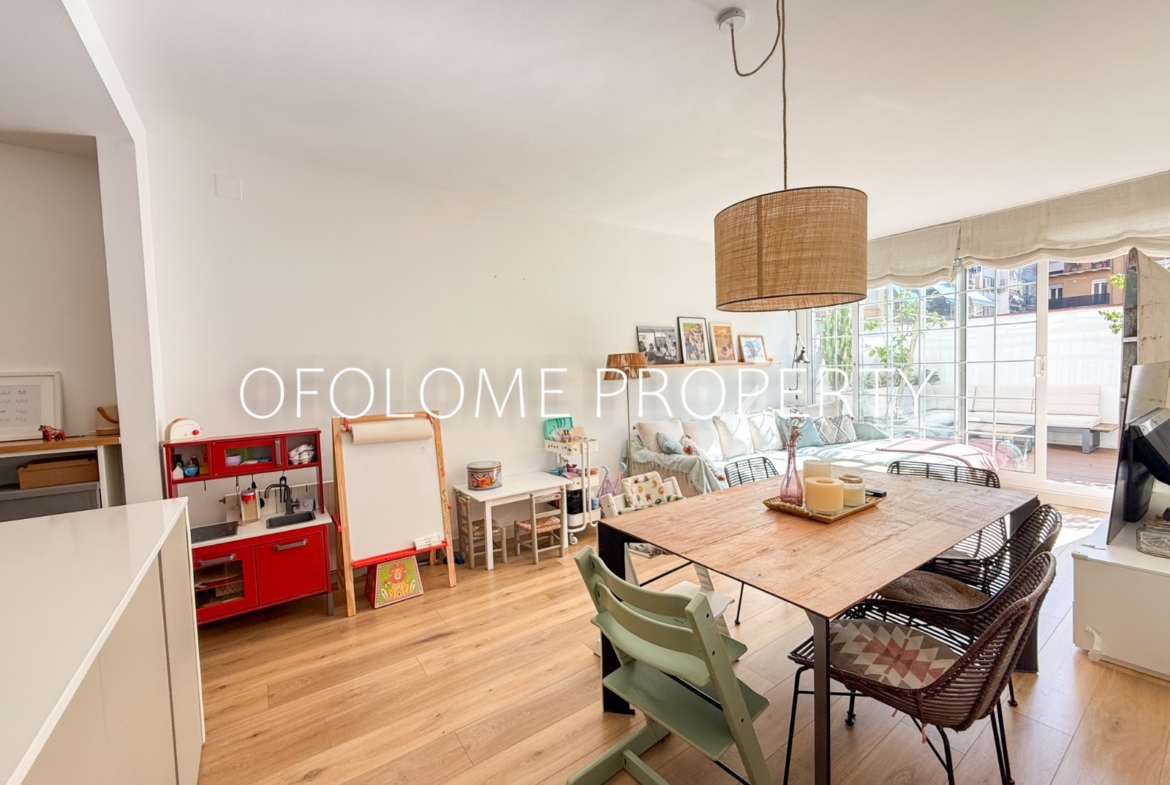 El salón-comedor, de 21,8 m², ofrece amplitud, luminosidad y confort. Gracias a sus grandes ventanales de aluminio, la luz natural inunda la estancia durante todo el día, creando un ambiente acogedor y alegre. Desde aquí se accede a una elegante terraza de 17 m², un verdadero lujo en pleno centro de Barcelona. Este espacio exterior te permitirá disfrutar del clima mediterráneo durante todo el año: organizar cenas al aire libre, hacer barbacoas con amigos o simplemente relajarte al atardecer con una copa de vino.