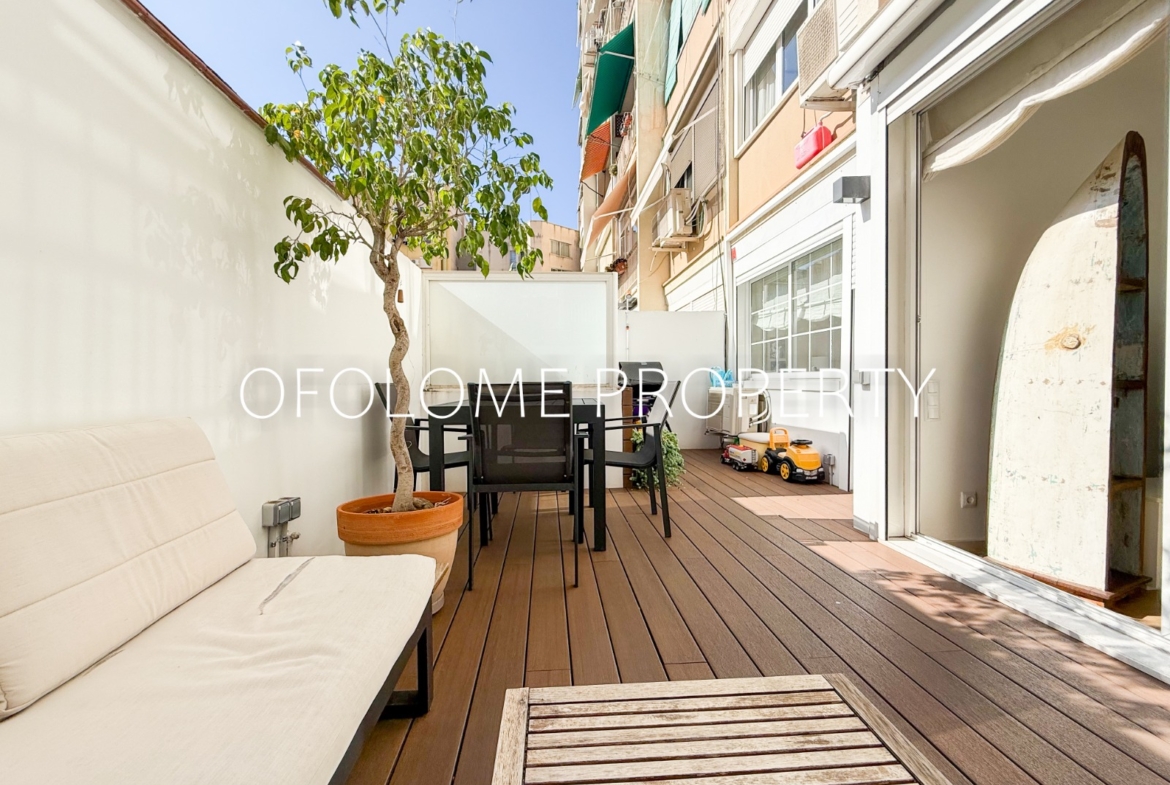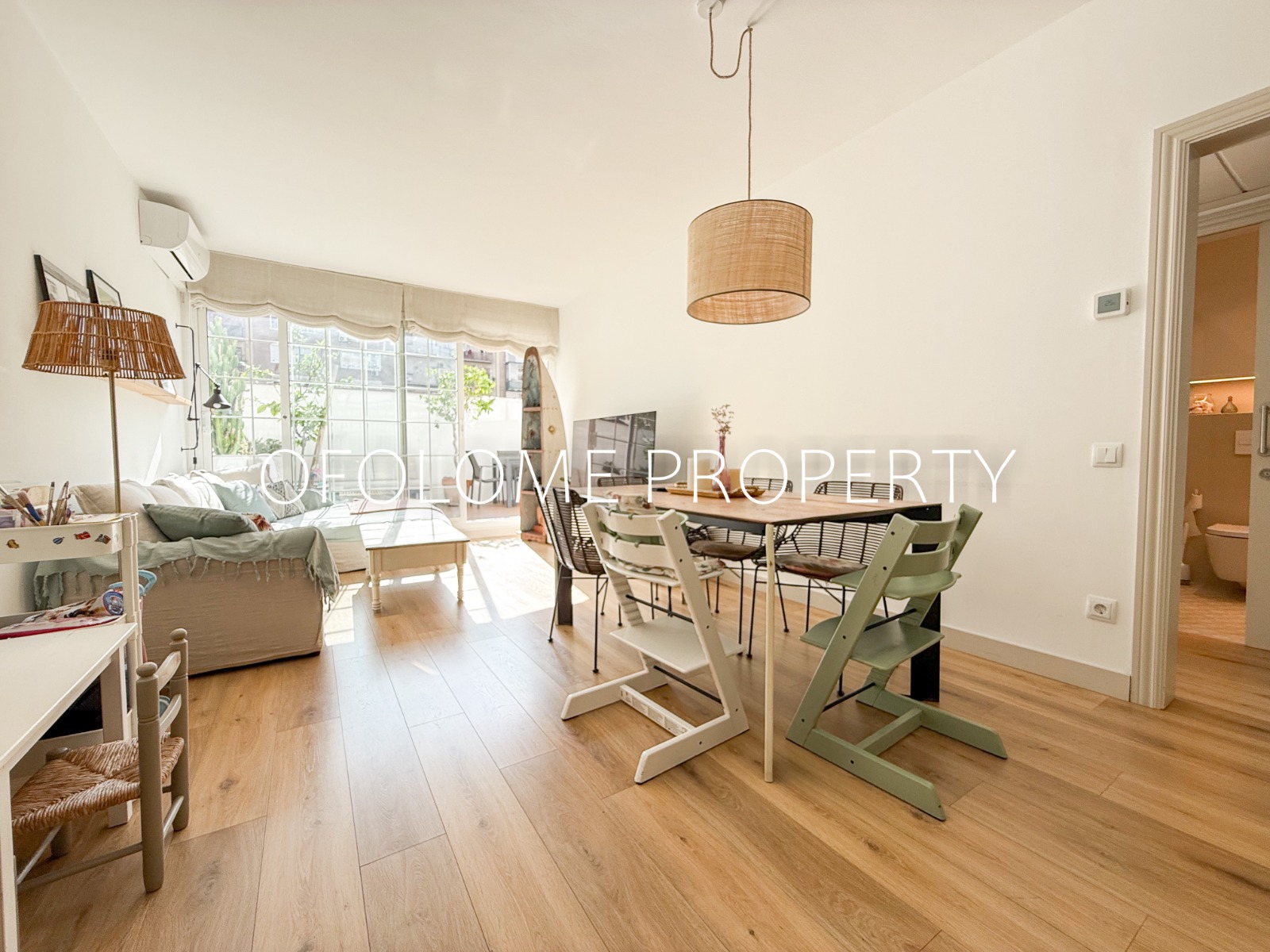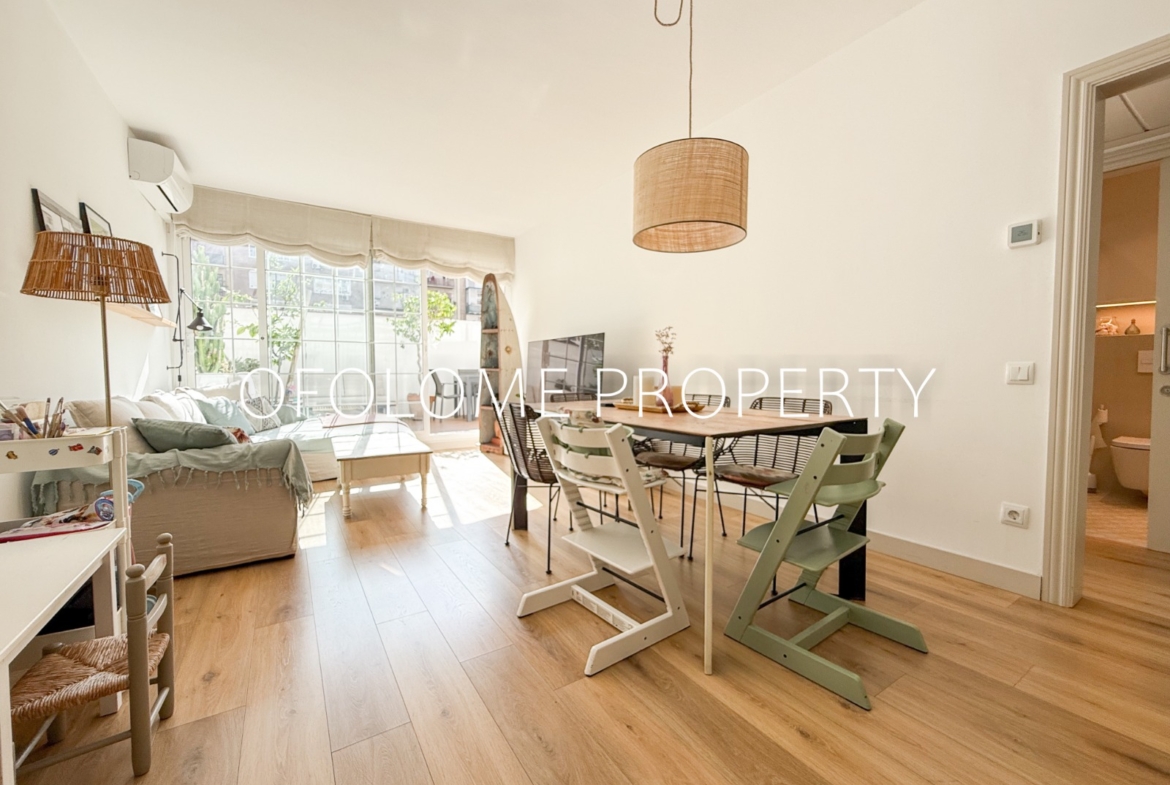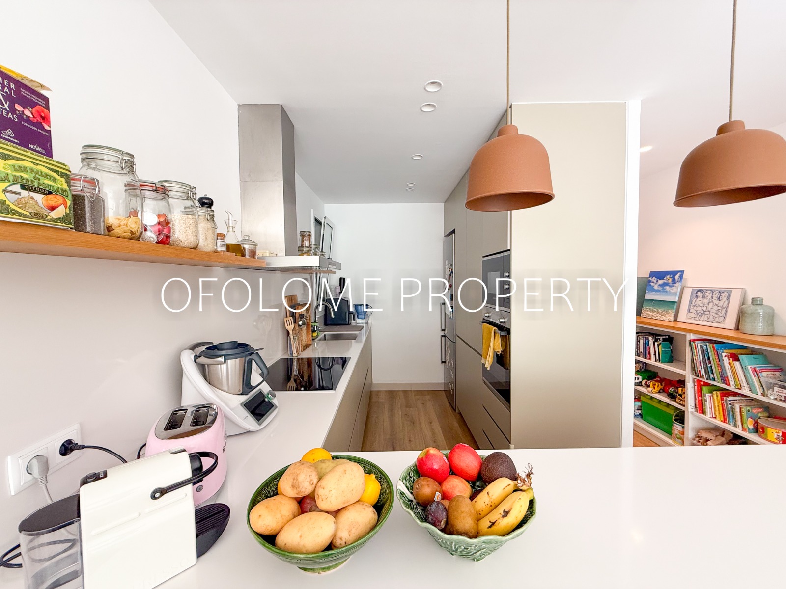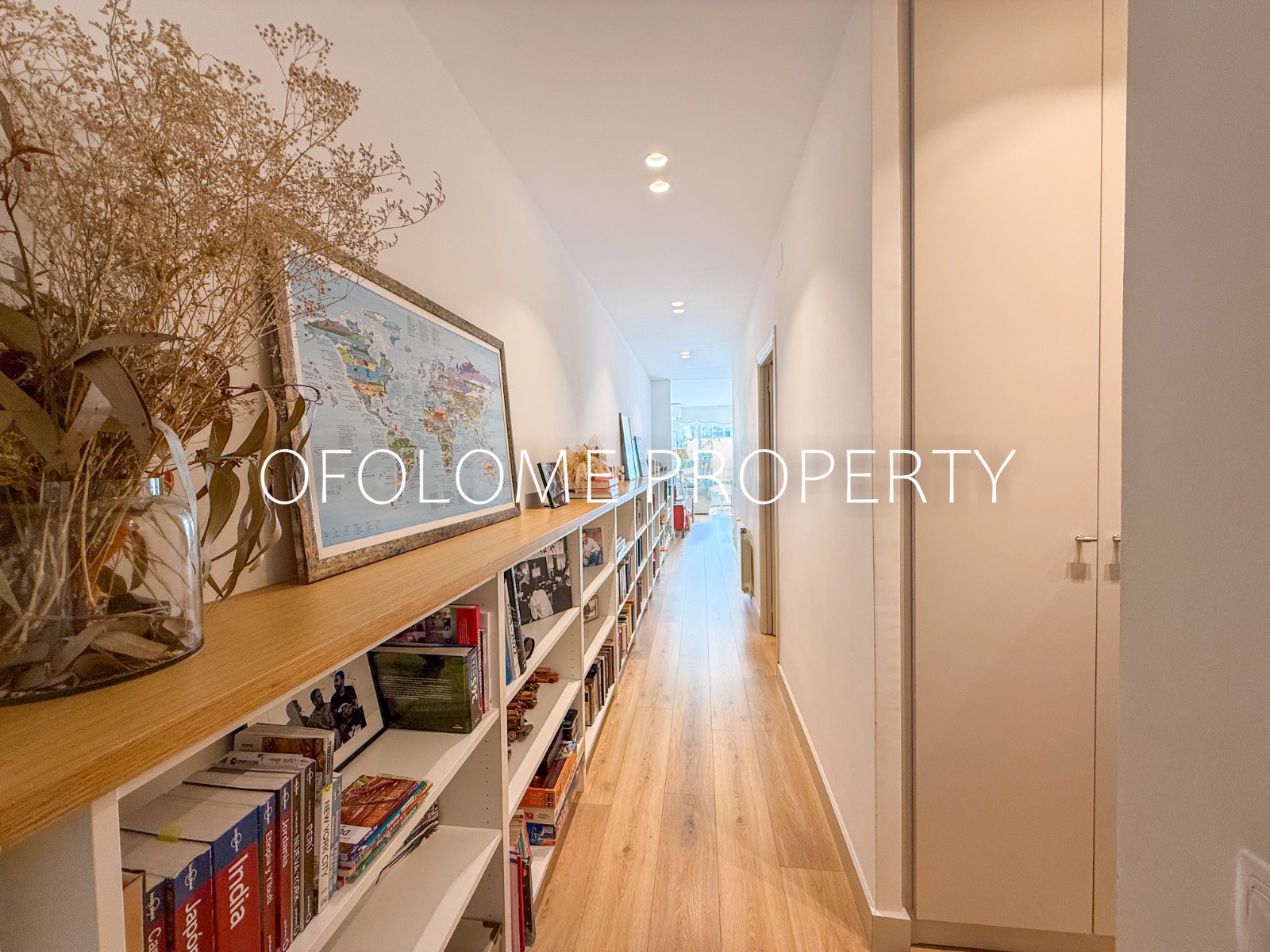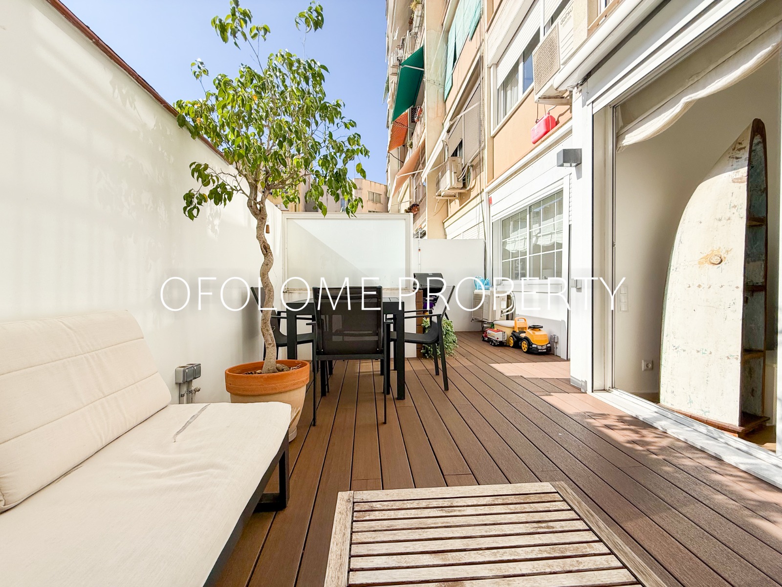 El salón-comedor, de 21,8 m², ofrece amplitud, luminosidad y confort. Gracias a sus grandes ventanales de aluminio, la luz natural inunda la estancia durante todo el día, creando un ambiente acogedor y alegre. Desde aquí se accede a una elegante terraza de 17 m², un verdadero lujo en pleno centro de Barcelona. Este espacio exterior te permitirá disfrutar del clima mediterráneo durante todo el año: organizar cenas al aire libre, hacer barbacoas con amigos o simplemente relajarte al atardecer con una copa de vino.