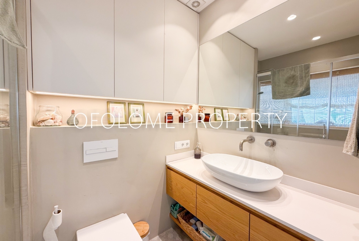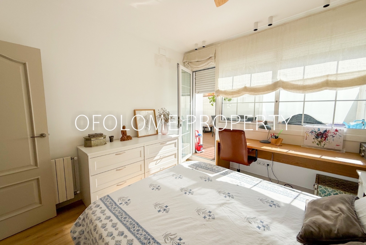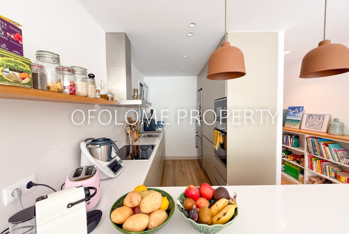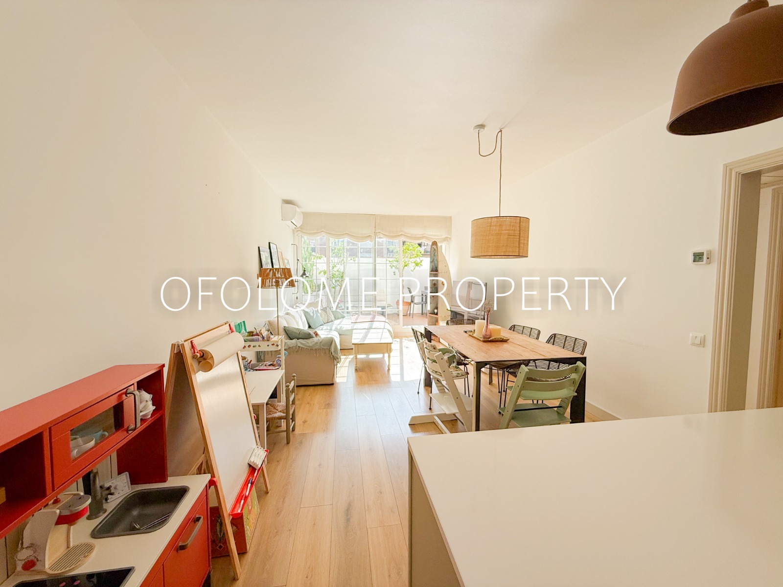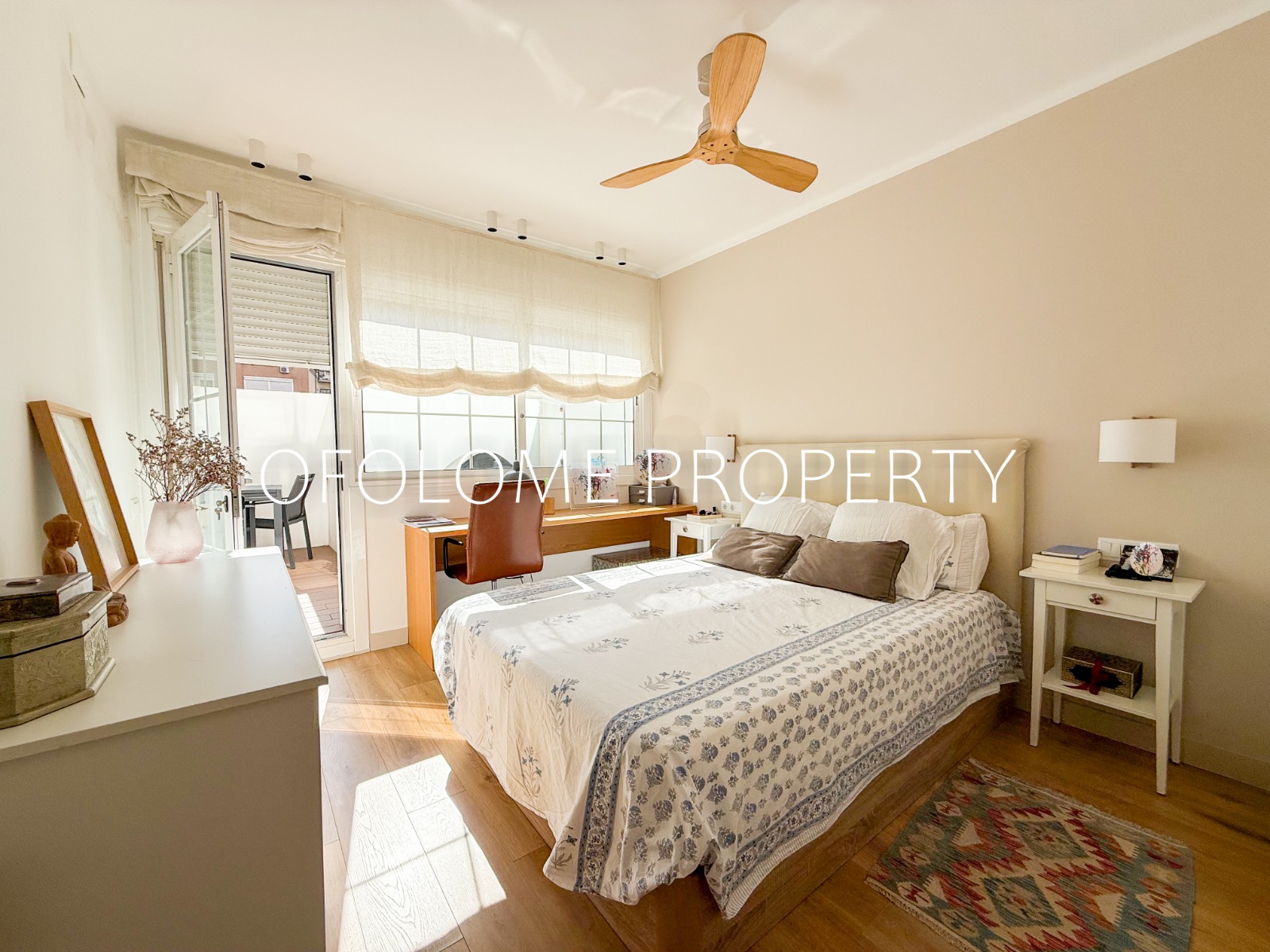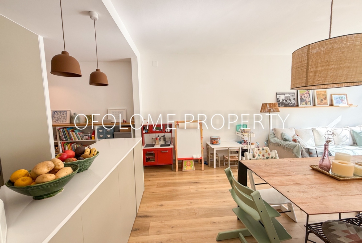 El salón-comedor, de 21,8 m², ofrece amplitud, luminosidad y confort. Gracias a sus grandes ventanales de aluminio, la luz natural inunda la estancia durante todo el día, creando un ambiente acogedor y alegre. Desde aquí se accede a una elegante terraza de 17 m², un verdadero lujo en pleno centro de Barcelona. Este espacio exterior te permitirá disfrutar del clima mediterráneo durante todo el año: organizar cenas al aire libre, hacer barbacoas con amigos o simplemente relajarte al atardecer con una copa de vino.