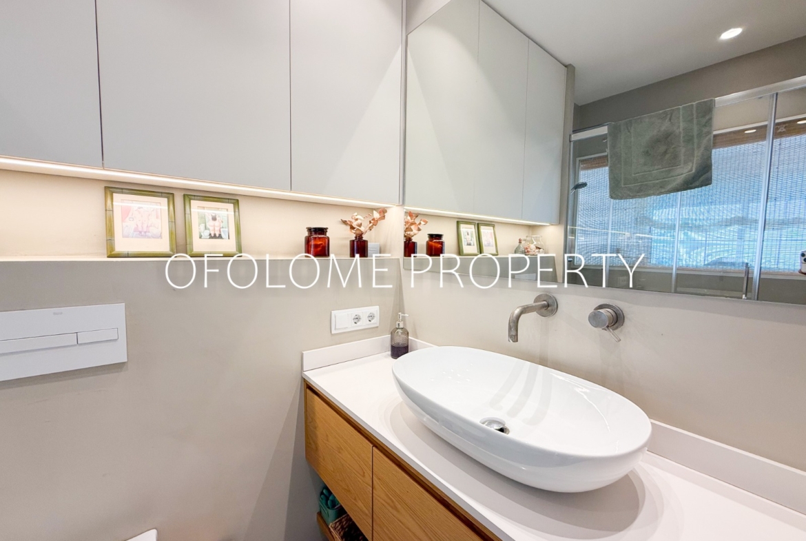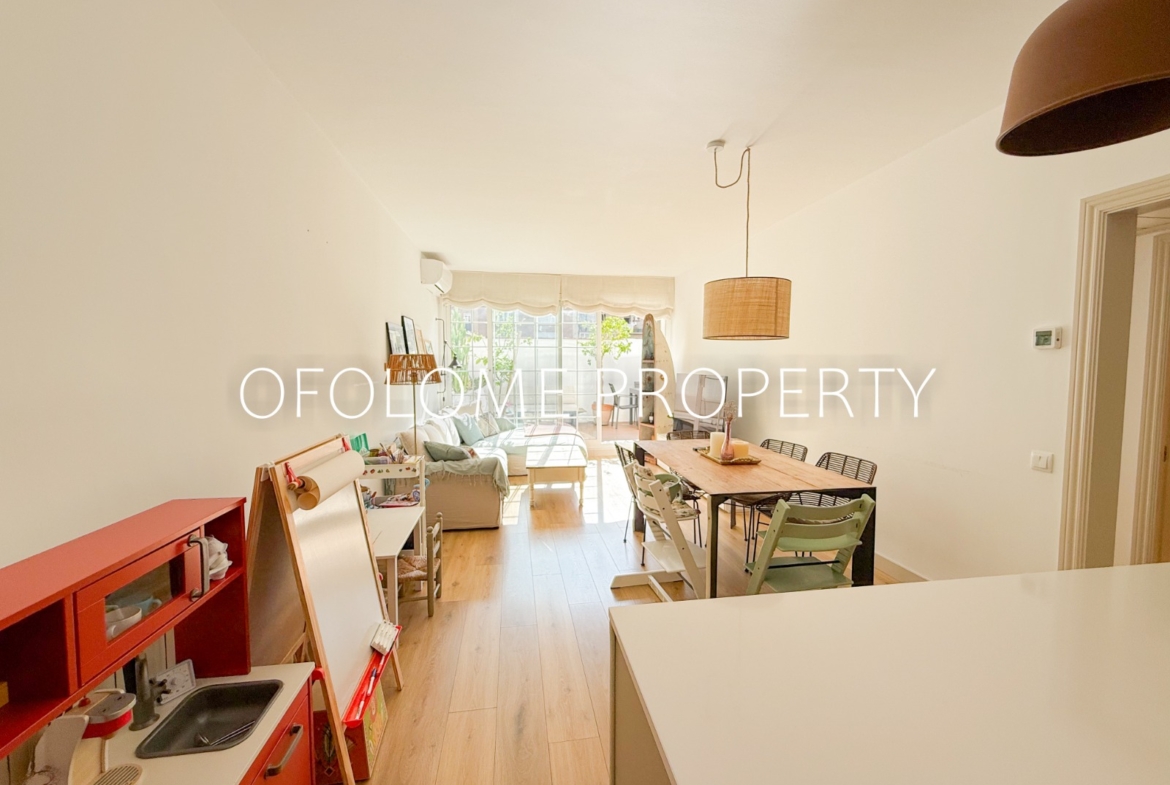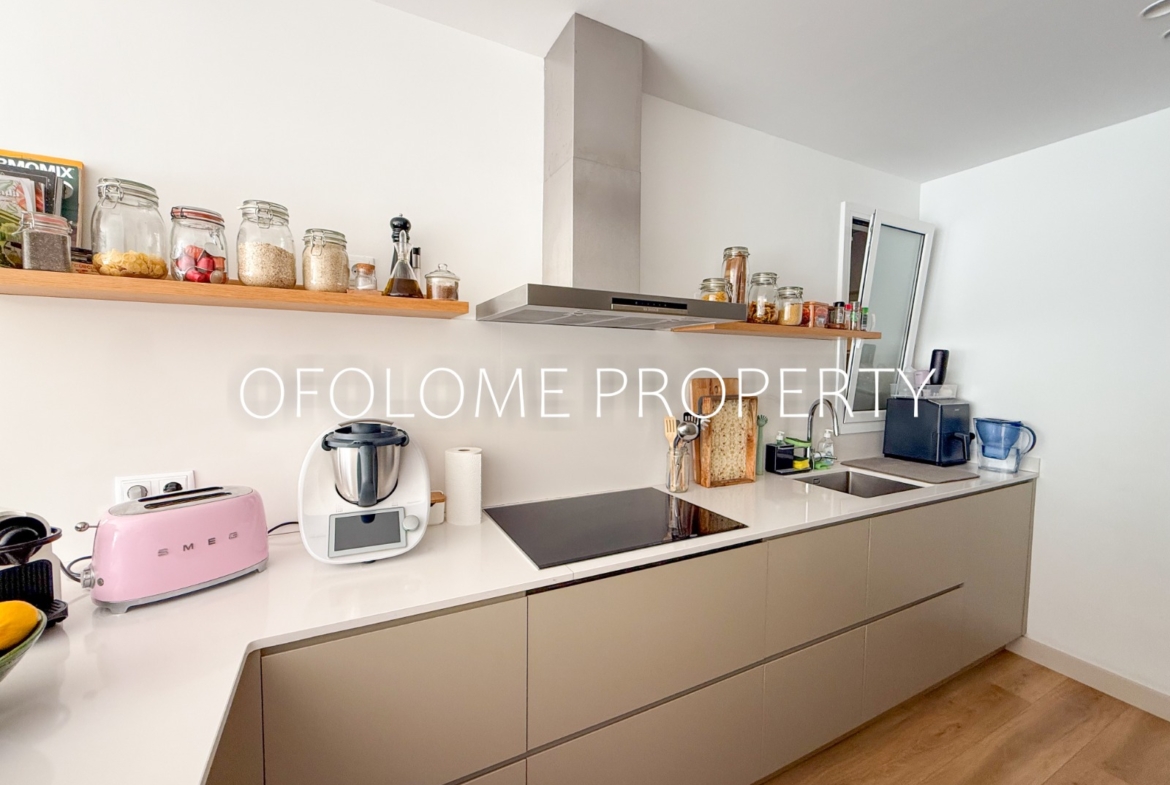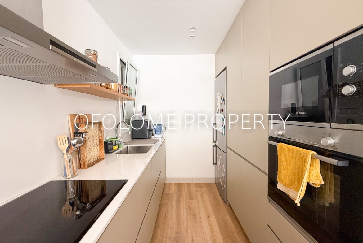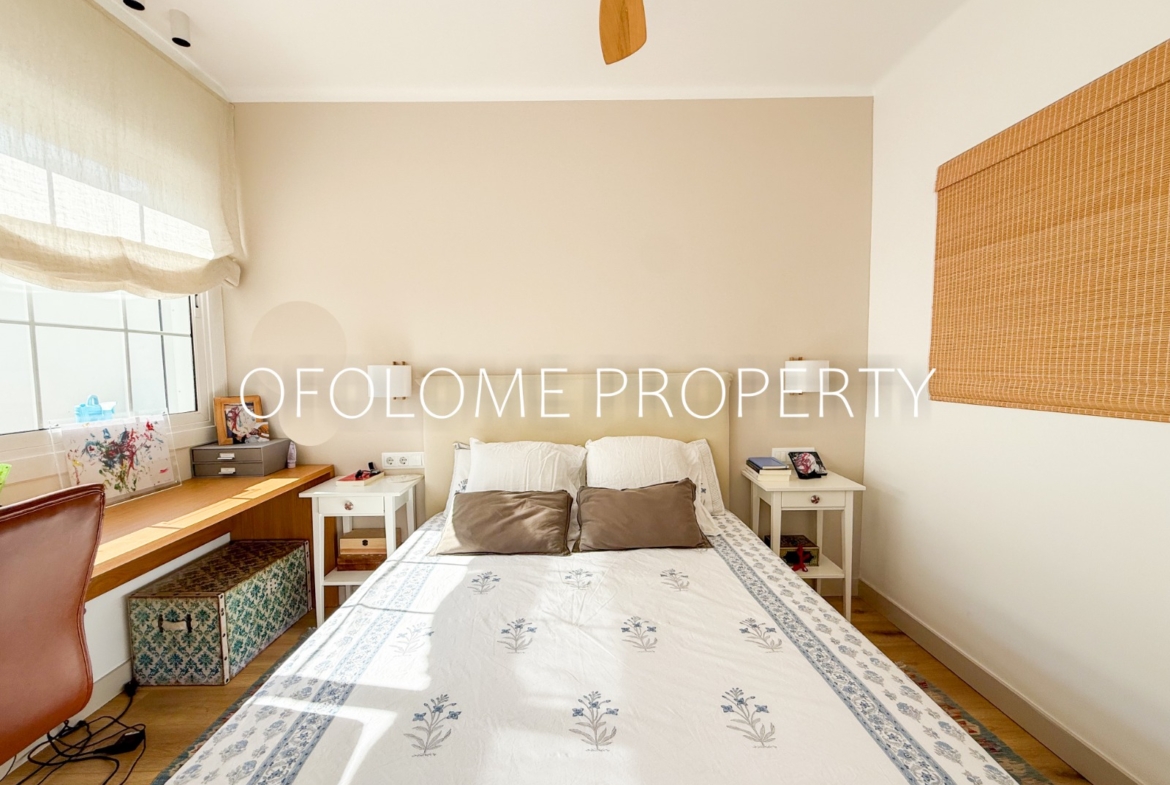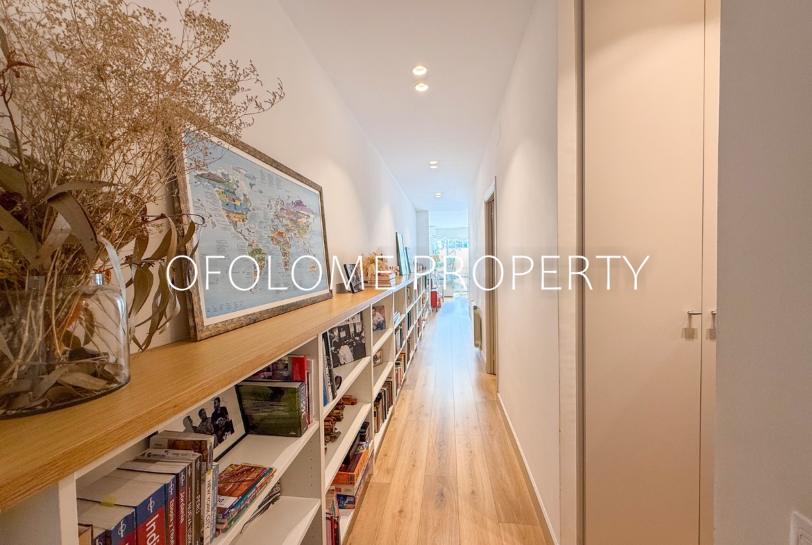 El salón-comedor, de 21,8 m², ofrece amplitud, luminosidad y confort. Gracias a sus grandes ventanales de aluminio, la luz natural inunda la estancia durante todo el día, creando un ambiente acogedor y alegre. Desde aquí se accede a una elegante terraza de 17 m², un verdadero lujo en pleno centro de Barcelona. Este espacio exterior te permitirá disfrutar del clima mediterráneo durante todo el año: organizar cenas al aire libre, hacer barbacoas con amigos o simplemente relajarte al atardecer con una copa de vino.