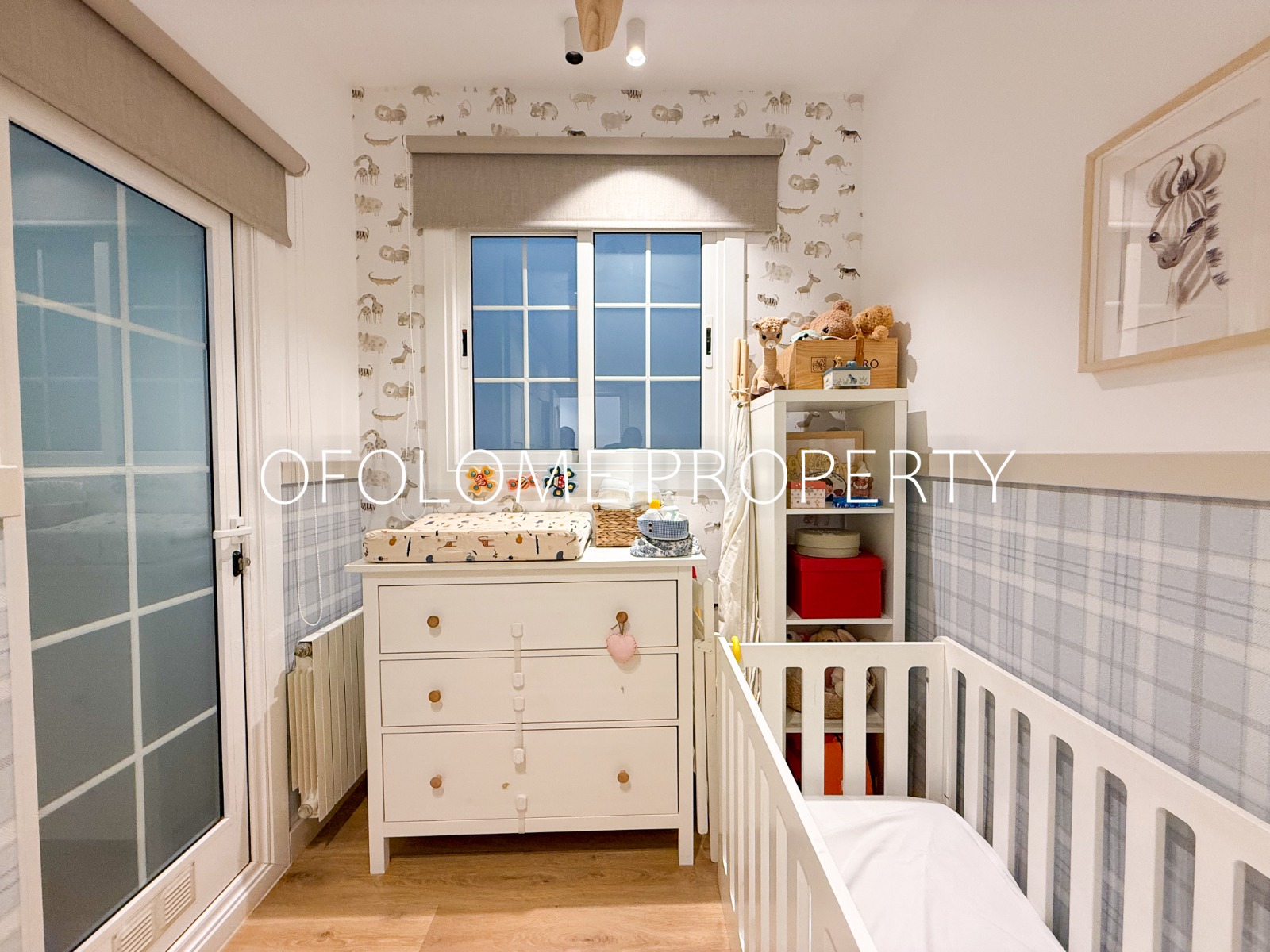La vivienda se completa con la habitación principal, un espacio amplio y luminoso, ideal como refugio personal. Dispone de ventanas de aluminio y una puerta con acceso directo a la terraza, lo que permite disfrutar de luz natural desde primera hora del día. Su orientación y diseño convierten esta estancia en un lugar perfecto para el descanso y el bienestar.