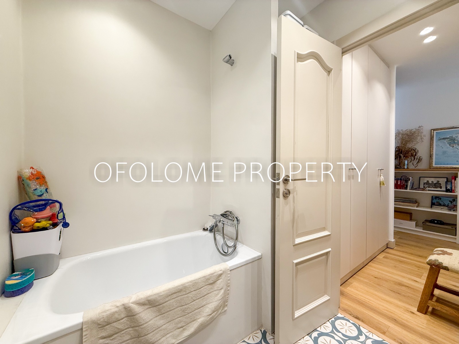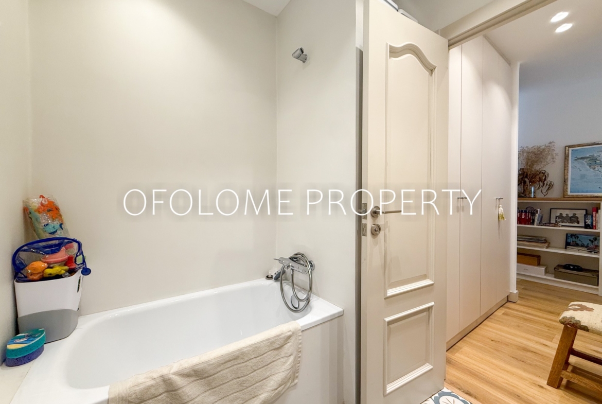 Al entrar en la vivienda, nos recibe un acogedor recibidor de 5,66 m², diseñado con un estilo cálido y elegante que marca el tono del resto de la vivienda. Desde aquí accedemos al pasillo principal, que distribuye de manera práctica todas las estancias del piso. A la derecha, encontramos amplios armarios empotrado que ofrece espacio de almacenamiento adicional, seguido por el primer baño completo, moderno y funcional, equipado con materiales de alta calidad. Su bañera invita a relajarse después de un largo día, convirtiéndose en un pequeño oasis dentro de casa.