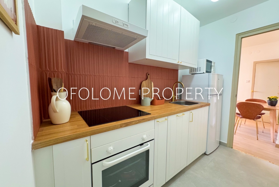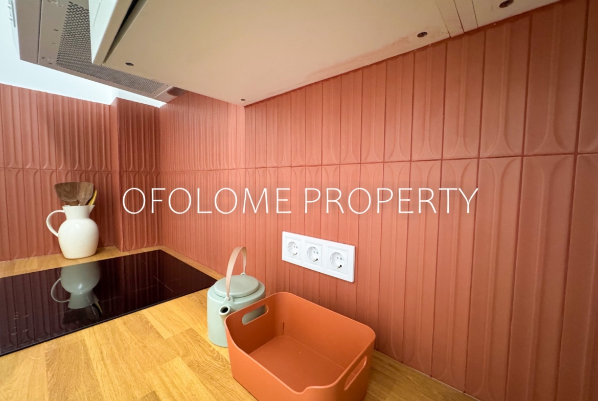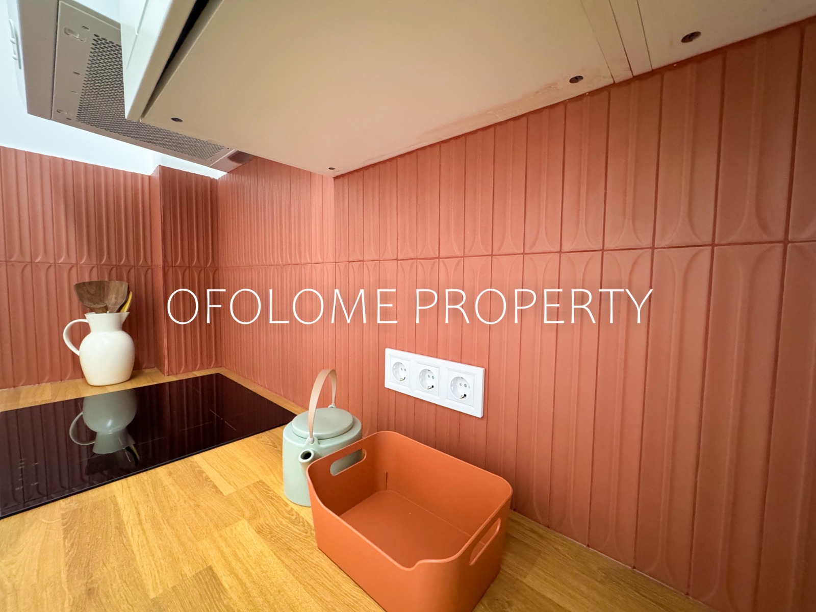 La cocina ha sido diseñada con un estilo elegante y moderno, manteniendo el espíritu de la vivienda. Dispone de azulejos de alta calidad, una encimera de madera que aporta calidez al espacio y todos los electrodomésticos nuevos, listos para su uso. Es una cocina funcional y estética, pensada para quienes disfrutan cocinar en un entorno práctico y agradable. Desde la cocina se accede a un pequeño balcón interior que funciona como cuarto de lavado, un espacio muy útil para la colada y almacenamiento adicional.