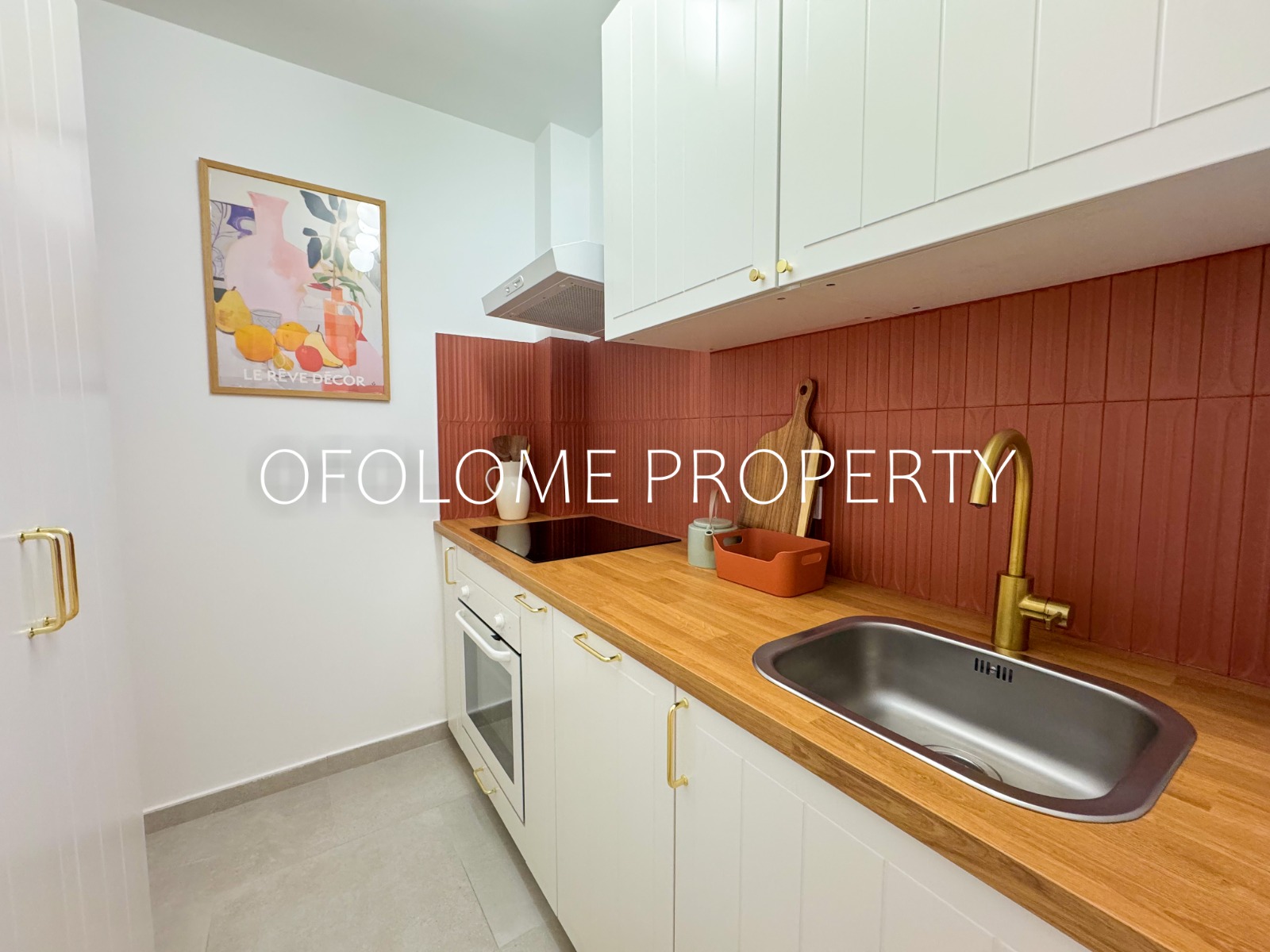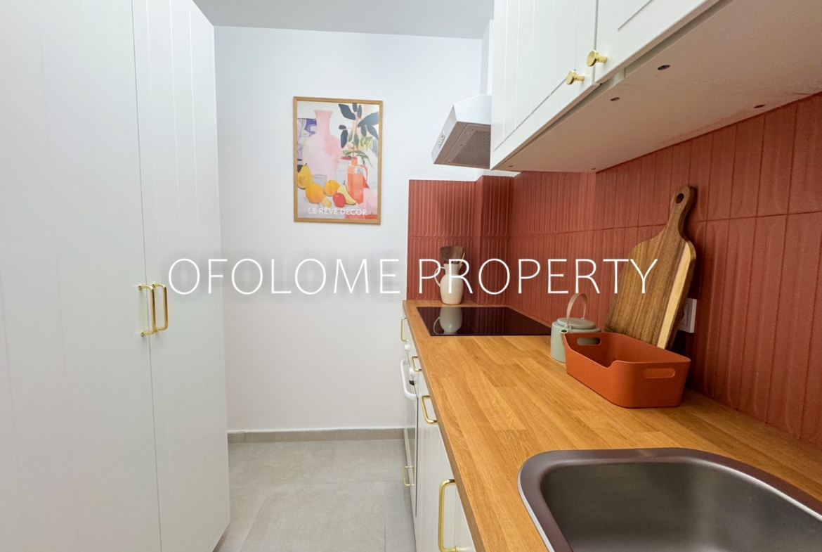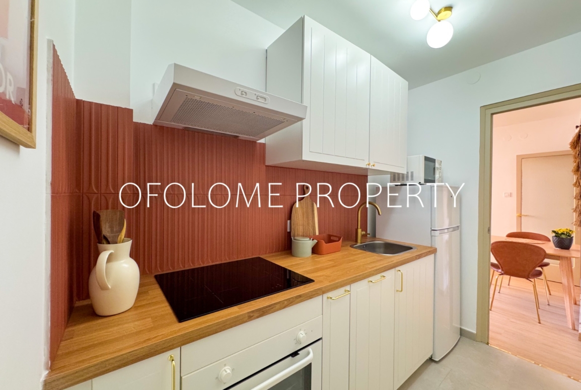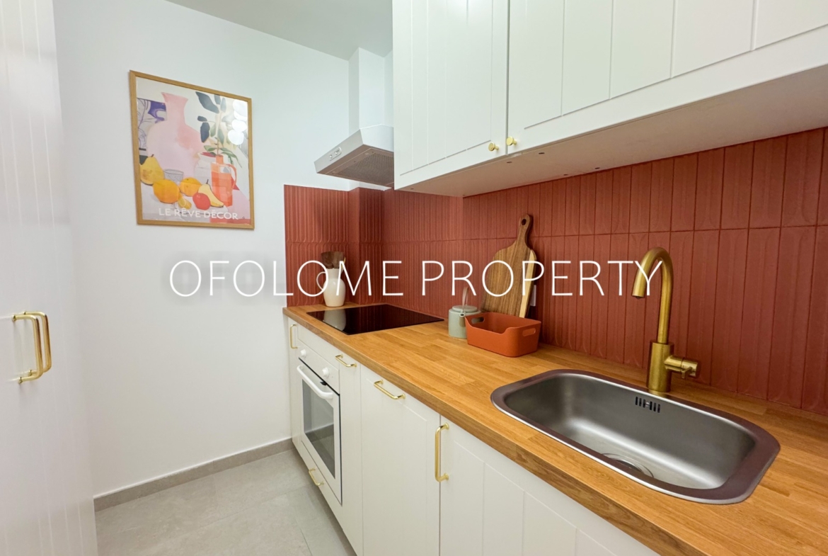 La cocina ha sido diseñada con un estilo elegante y moderno, manteniendo el espíritu de la vivienda. Dispone de azulejos de alta calidad, una encimera de madera que aporta calidez al espacio y todos los electrodomésticos nuevos, listos para su uso. Es una cocina funcional y estética, pensada para quienes disfrutan cocinar en un entorno práctico y agradable. Desde la cocina se accede a un pequeño balcón interior que funciona como cuarto de lavado, un espacio muy útil para la colada y almacenamiento adicional.
