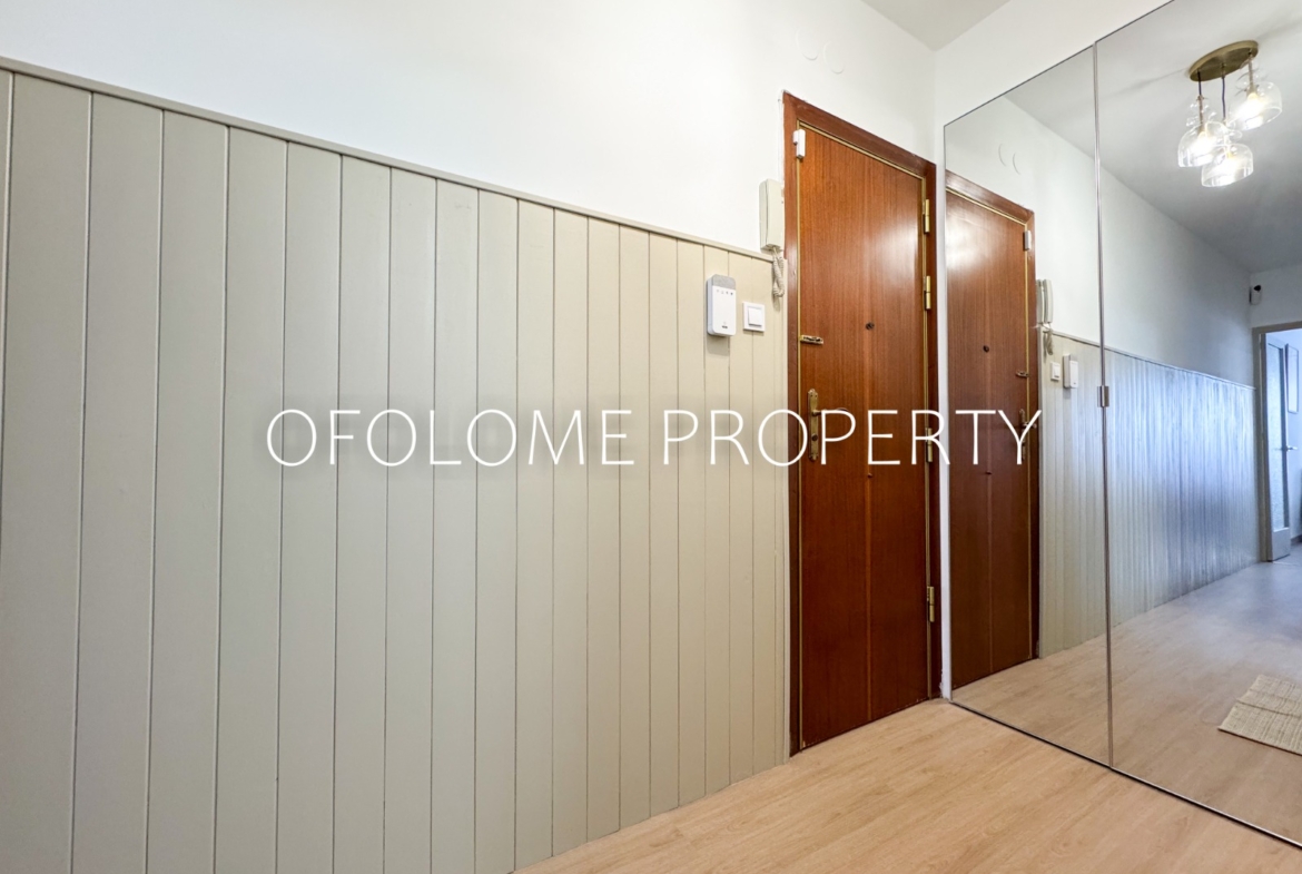 Al acceder a la vivienda, nos recibe un pequeño recibidor con una puerta con espejo, un detalle práctico y elegante que permite comprobar el look antes de salir de casa. Este espacio de entrada aporta privacidad y marca una transición agradable hacia el resto del piso.